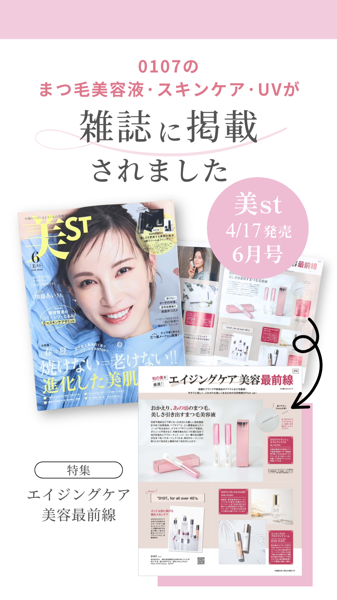2026.04.17お知らせ 4/17発売の美st6月号に掲載されました 4/17発売の美st6月号の 「エイジングケア美容最前線」で 0107スキンケア掲載いただきました! お知らせ GW中の商品発送につきまして Related posts Wエンドブラシ モデルチェンジのお知らせ クリーム12月中旬入荷のおしらせ ミクスグロウ(スクラブ洗浄料) 年末年始休業期間・商品発送スケジュールのご案内 5/13発売!新商品のご案内♪ 0107 プレミアムクリーム